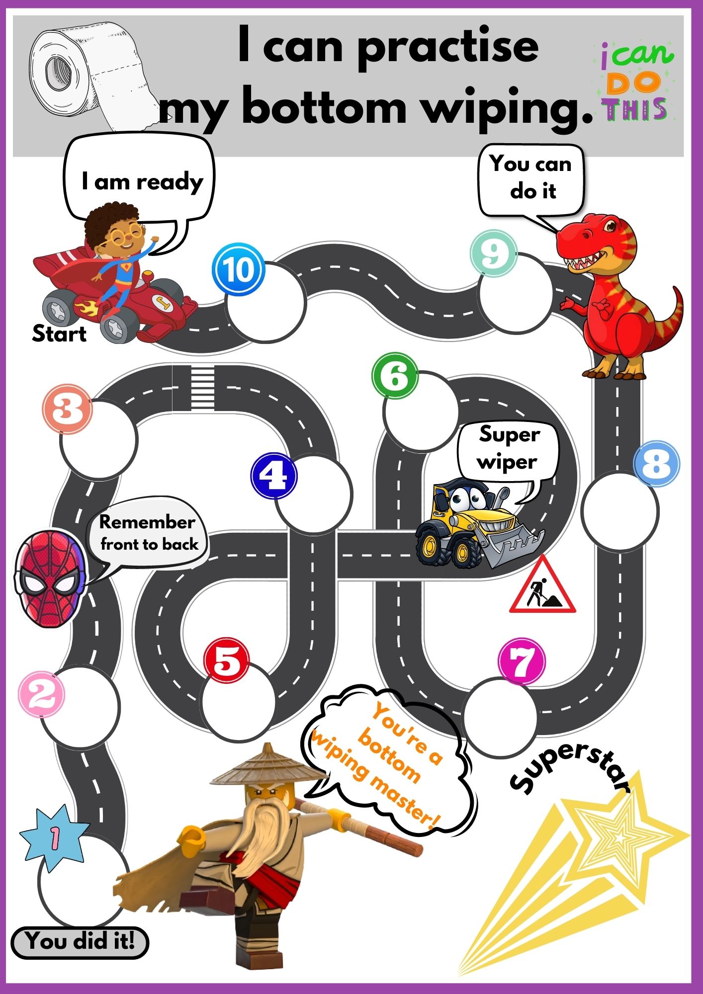 Here's how the chart can work,each time your child successfully practises wiping their bottom, you can give them a sticker or a checkmark on the chart.
