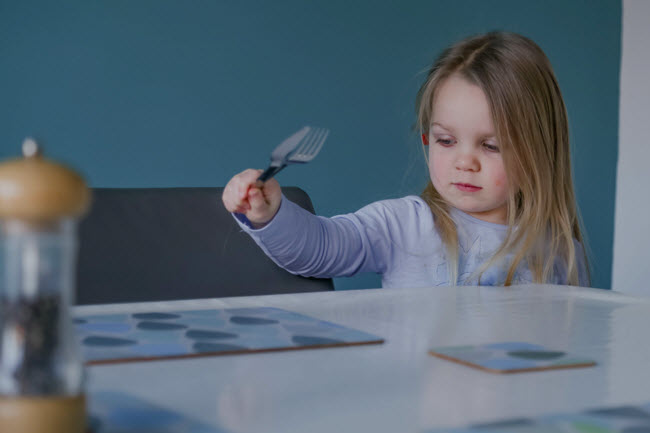 I enjoyed finding new ways that the little girl could use her senses during household chores to form early concepts of size, shape, colour, and quantity.