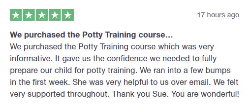 "Sue's online potty-training course has been invaluable! It's an incredible resource for our family and super easy to do with the videos only being 15/20 minutes each. I felt confident starting the training knowing we had implemented the right steps before hand.