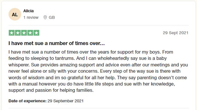 "The sleep goddess, “Sue is amazing. Her sleep knowledge and support is second to none.After three years of no sleep our son starting ,not only sleeping through the night but going to sleep on his own in his own bed! With small improvements seen from day one after speaking to Sue."