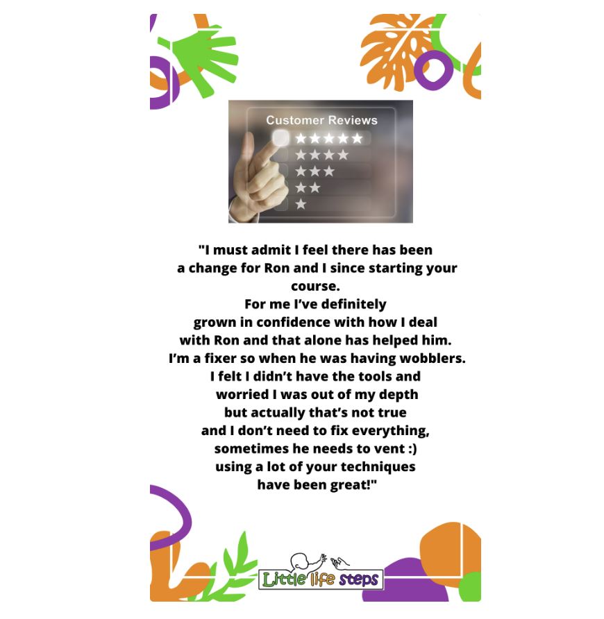 The 4 week course was brilliant and gave us lots of new tools and skills to use to help us deal with lots of different scenarios we were struggling with.